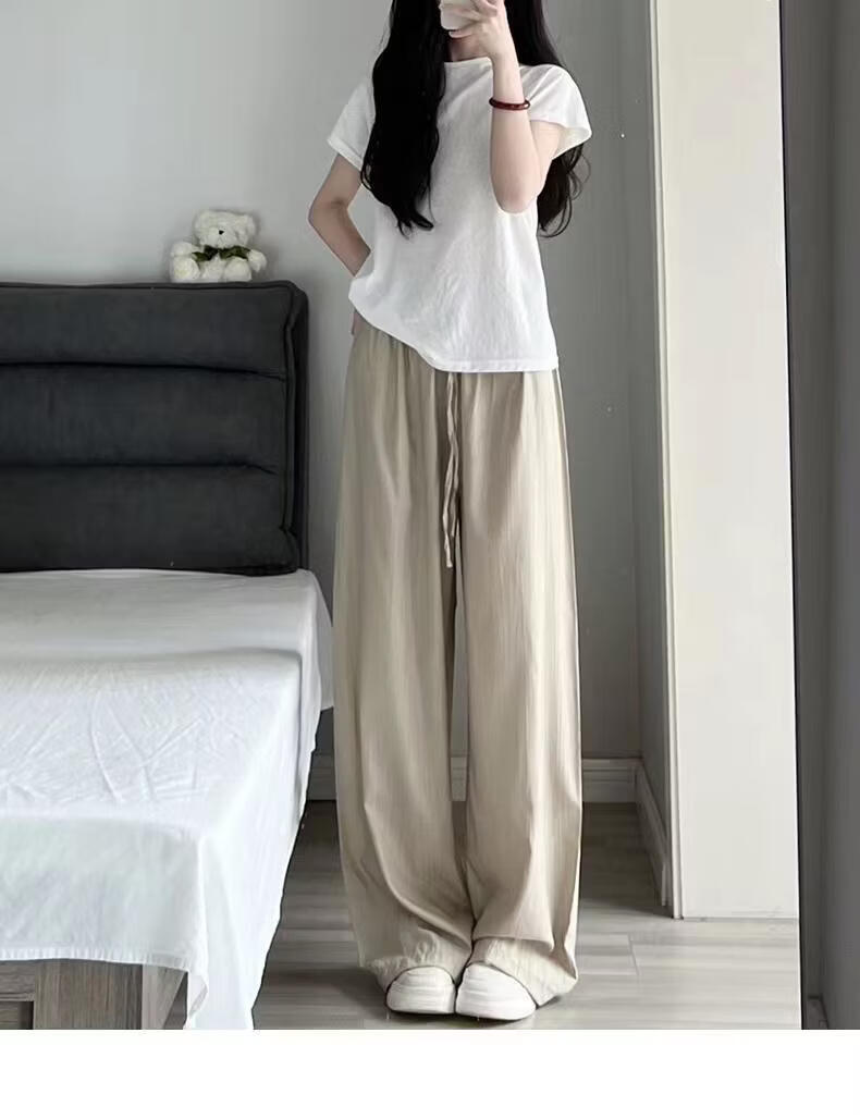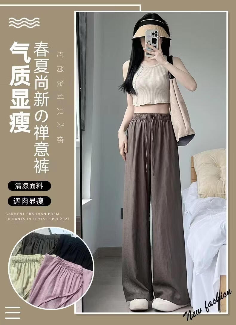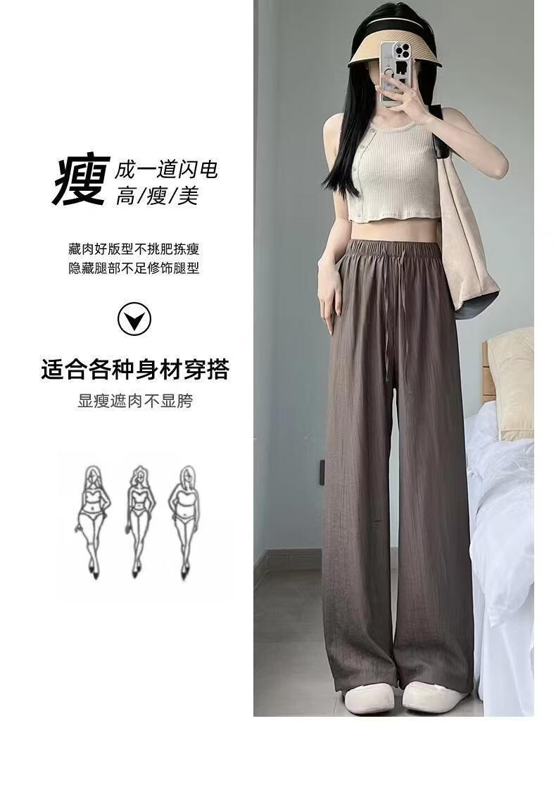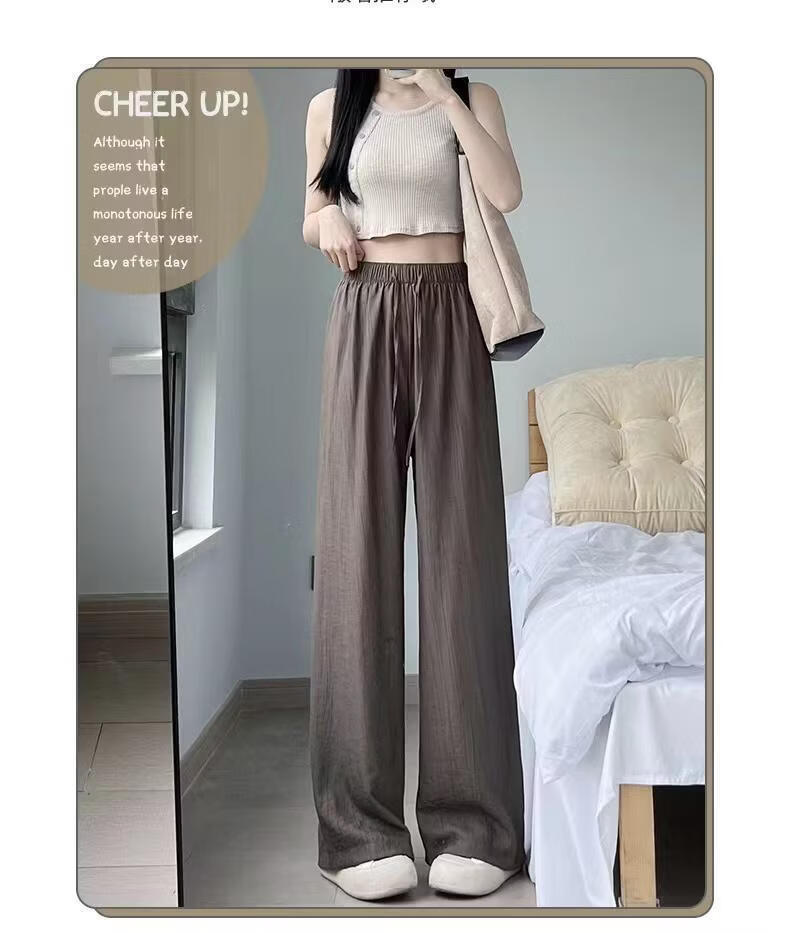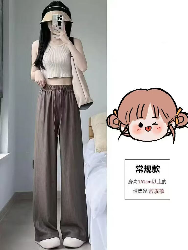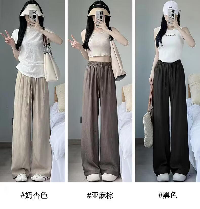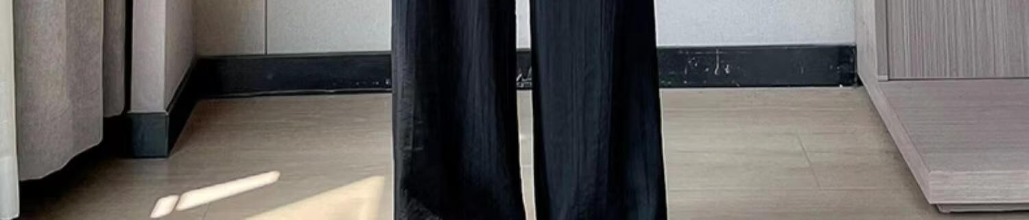 BURQAMARCH冰丝阔腿裤女夏季慵懒风褶皱禅意裤高腰垂感山本裤薄款休闲直筒裤 无口袋—【黑色】 L (建议110-125斤)