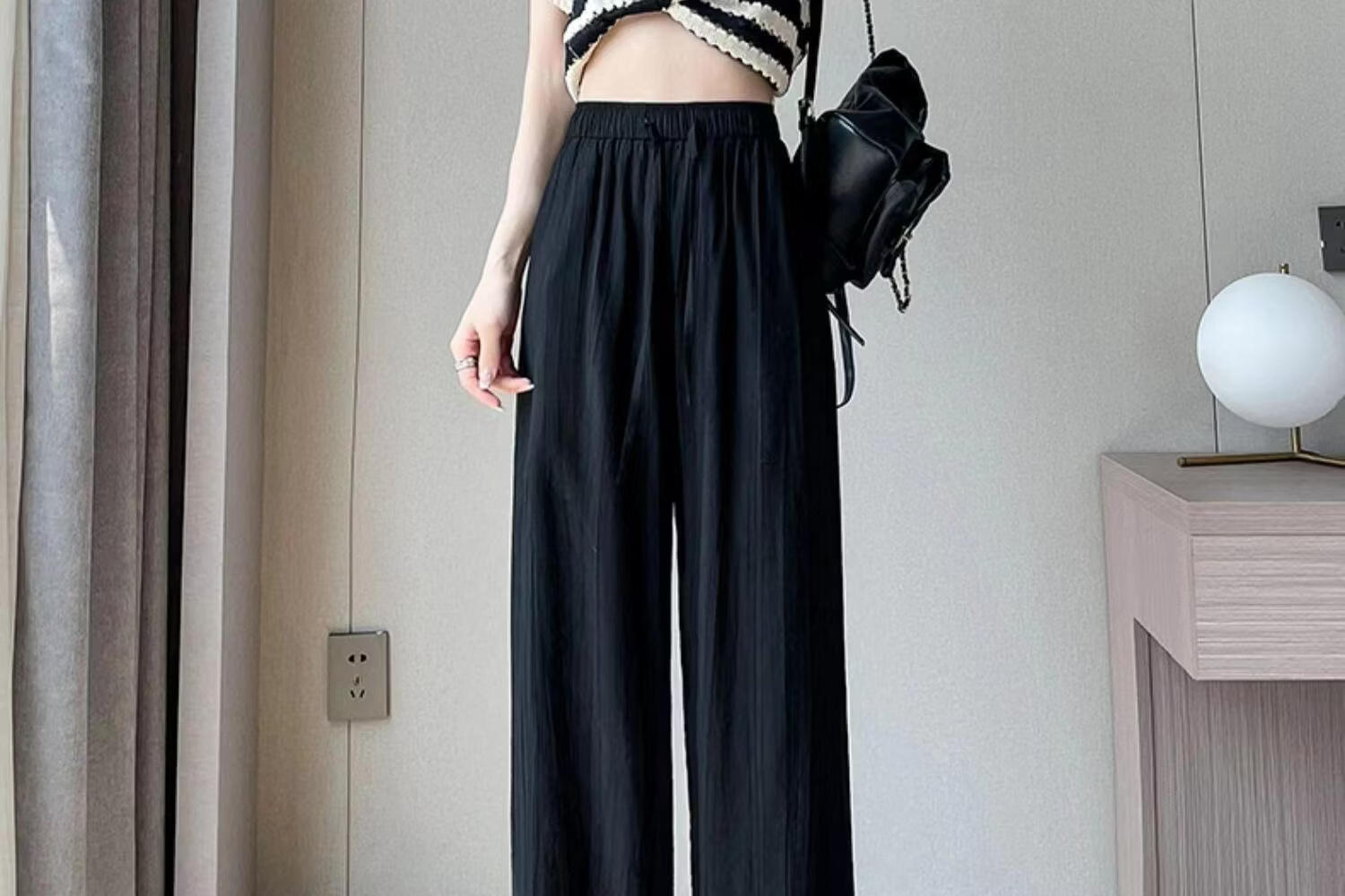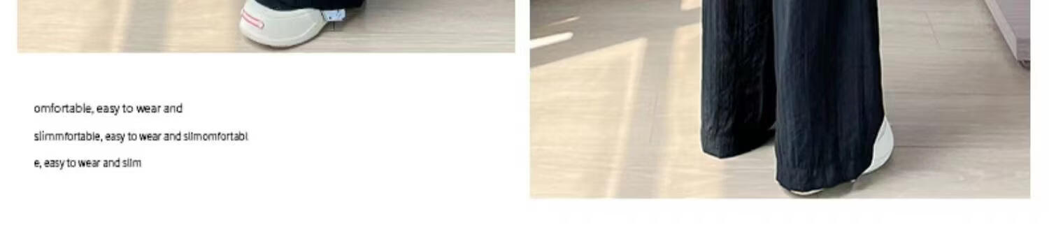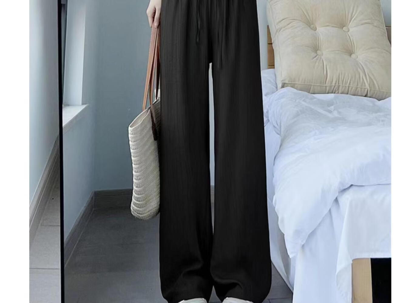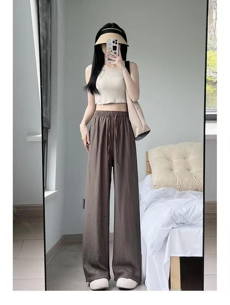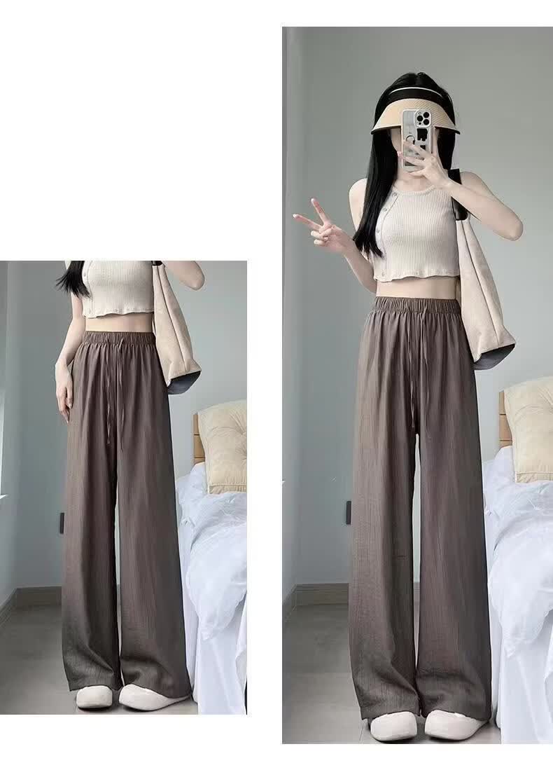 BURQAMARCH冰丝阔腿裤女夏季慵懒风褶皱禅意裤高腰垂感山本裤薄款休闲直筒裤 无口袋—【黑色】 L (建议110-125斤)