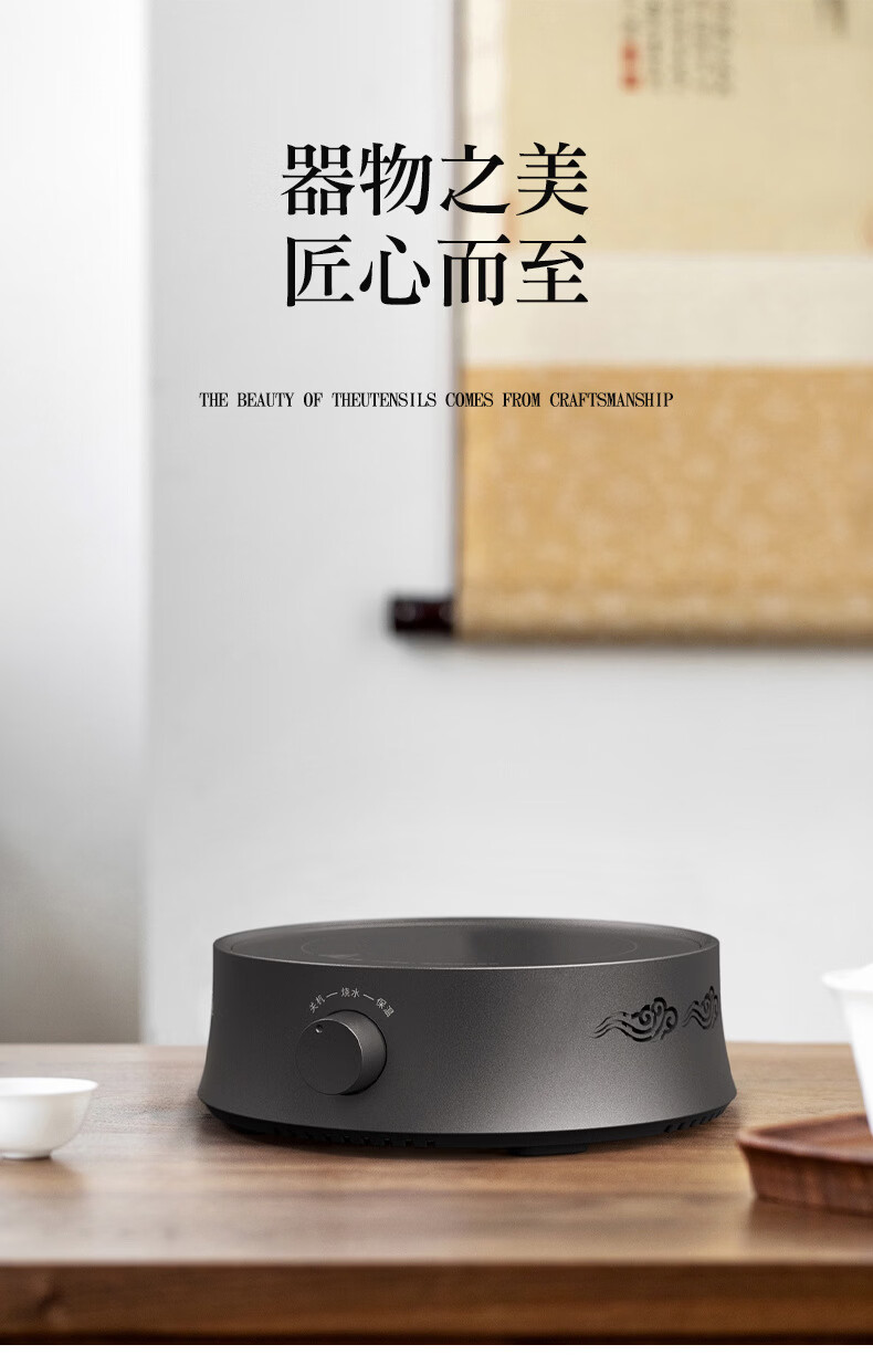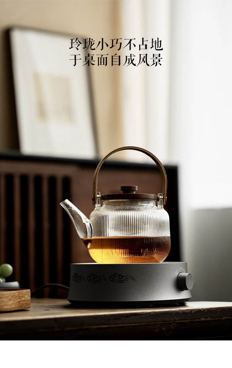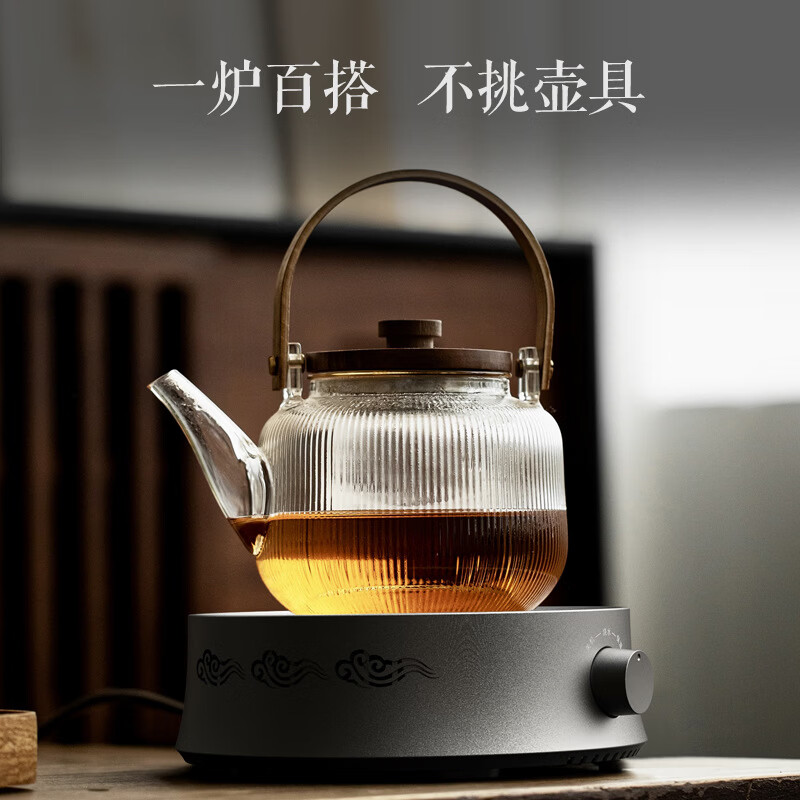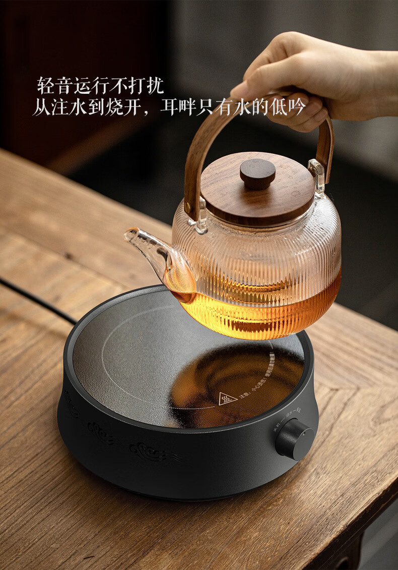 电陶炉茶炉煮茶器小型家用烧水壶泡茶专用多功能煮茶壶煮茶炉保温 650W【木纹色】电陶炉MC01C