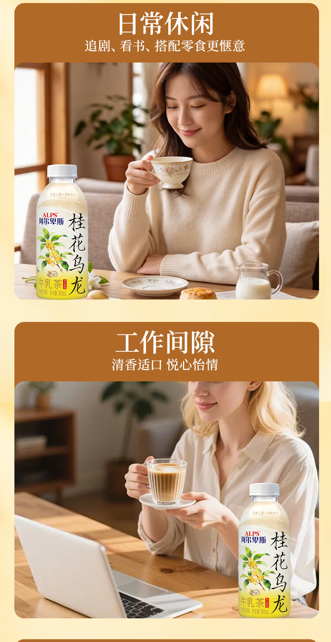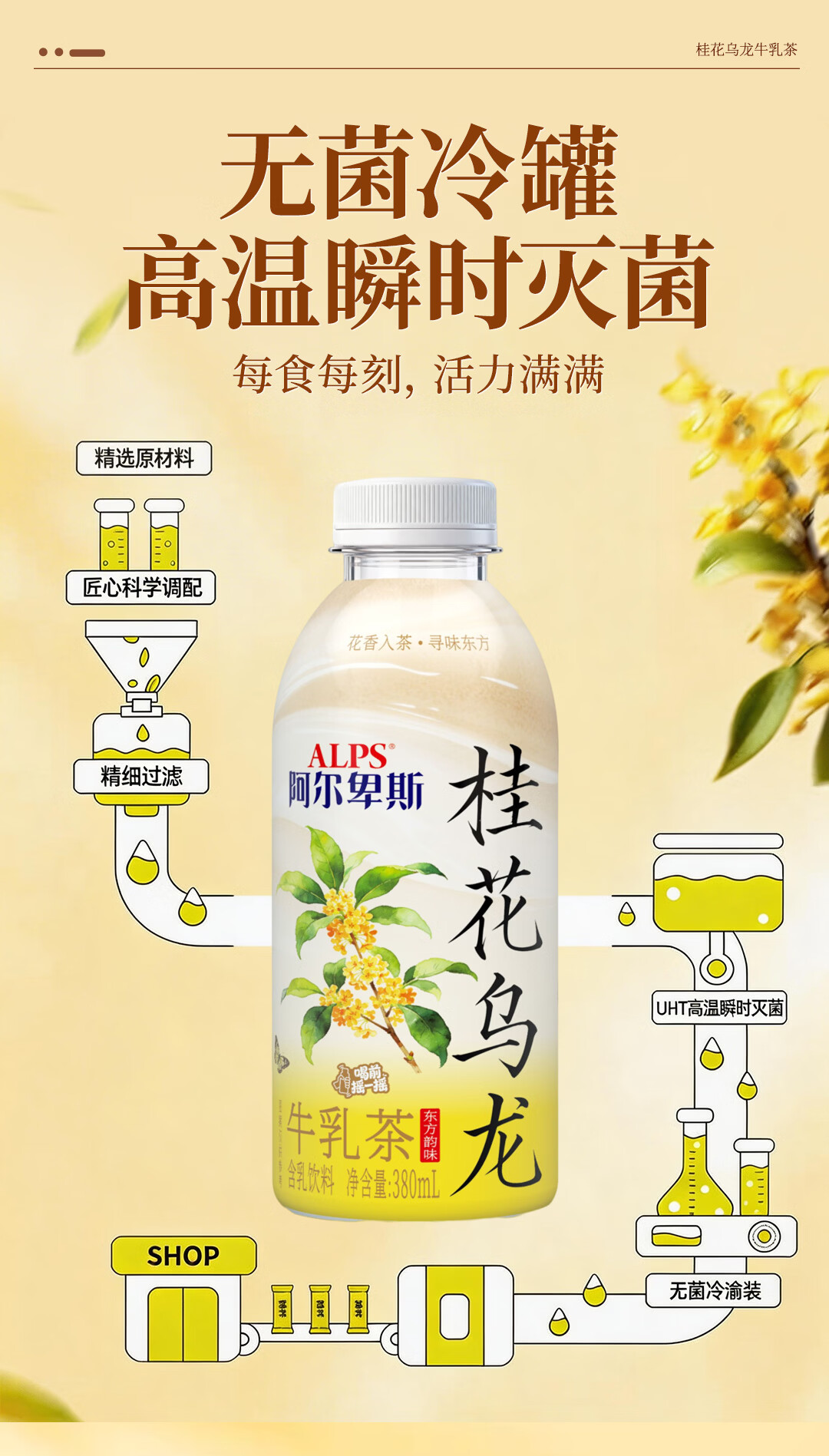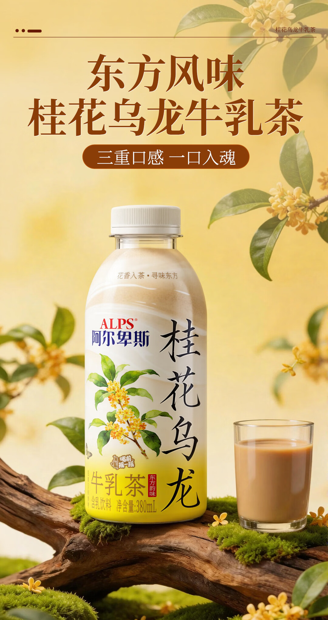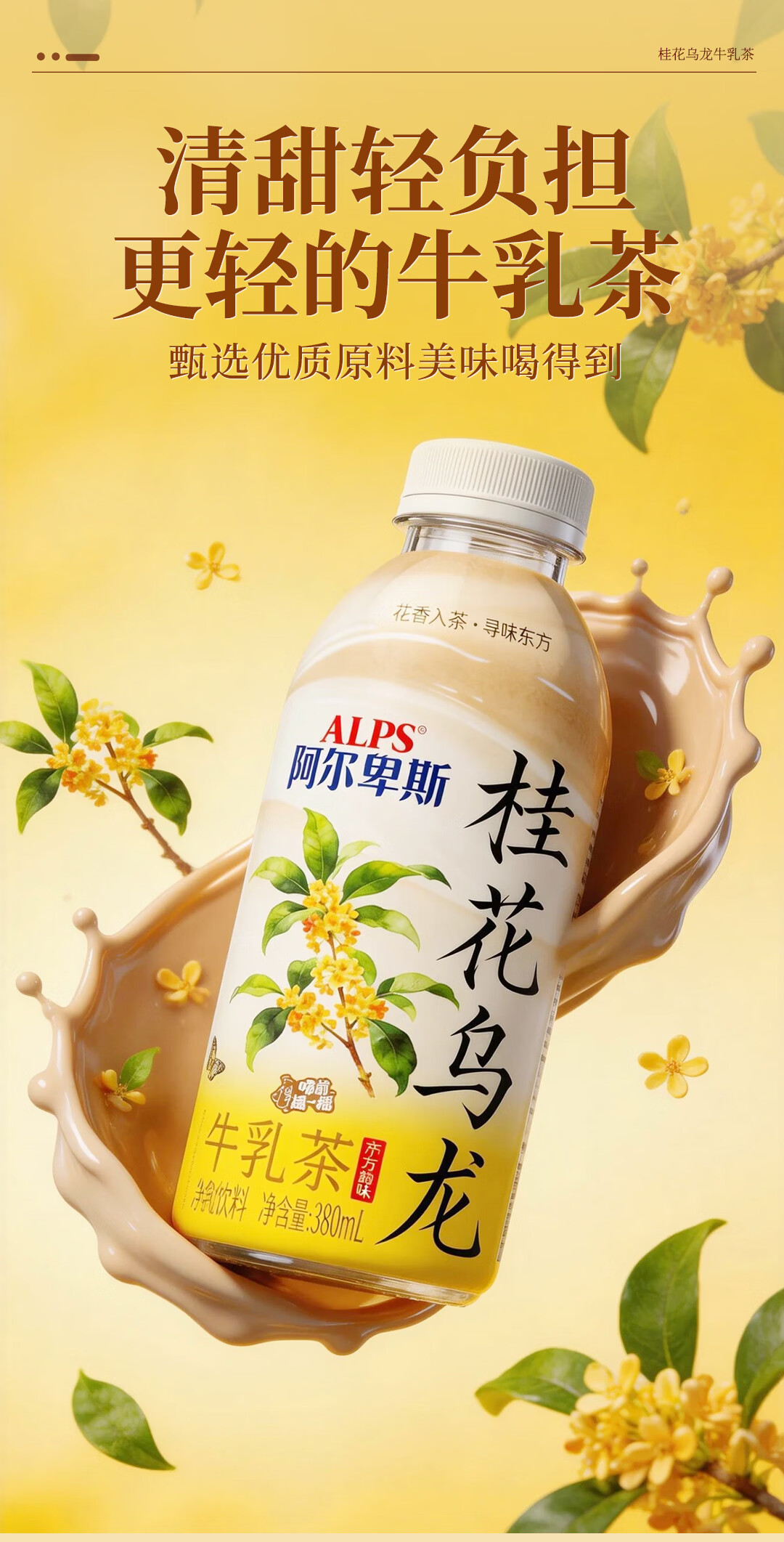阿尔卑斯桂花乌龙牛乳茶380ml瓶装饮品商超饭店同款网红款饮料正品包邮 桂花乌龙牛乳茶1箱【380ml*15瓶】整箱更划算